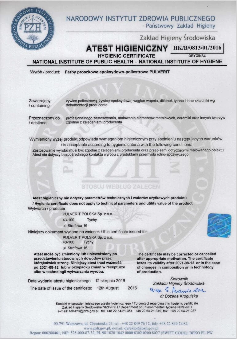 - Zgodność z certyfikatami, atestami i normami UE - m.in. GS, CE