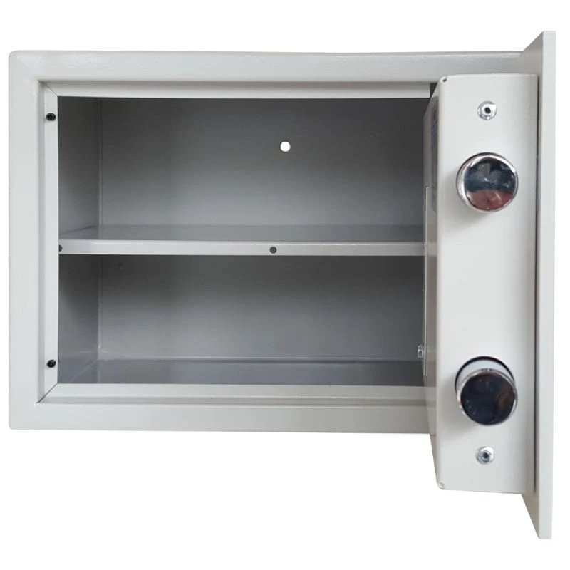 Dzięki wytrzymałej konstrukcji stalowej, wzmocnionym drzwiom oraz ochronie zamka przed rozwierceniem, sejf zapewnia skuteczną barierę przed nieuprawnionym dostępem.